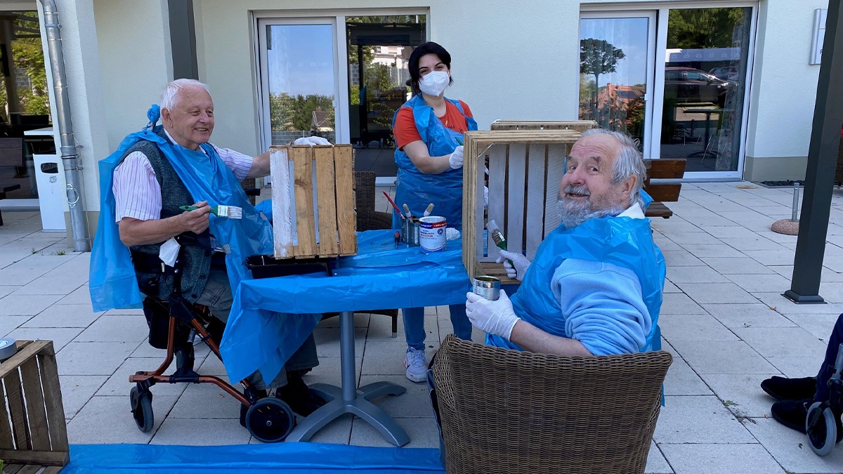 Die Bewohner*innen des „Haus Friedrich Ludwig Jahn“ legten selbst Hand an, um den Eingangsbereich der Pflegeeinrichtung in Dudweiler zu verschönern. Das Ergebnis ist toll und kann sich sehen lassen.