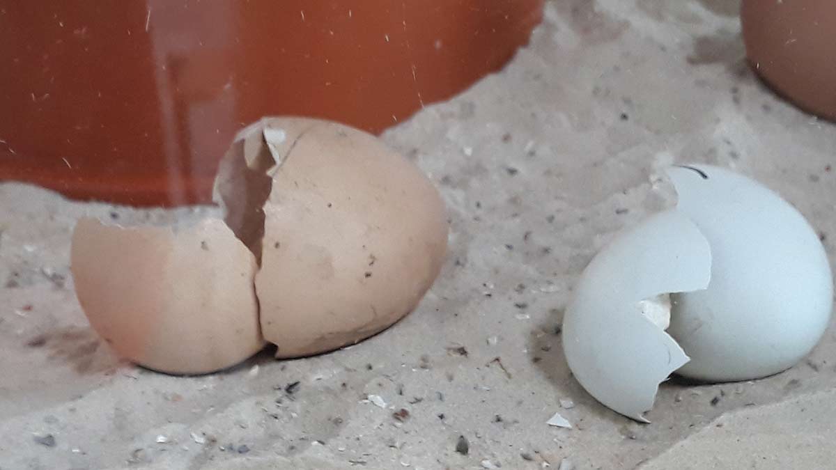 Natürlich waren die beiden beim Schlüpfen nicht alleine und wurden von den mitfiebernden Geburtshelferinnen Heidi und Manuela tatkräftig unterstützt.